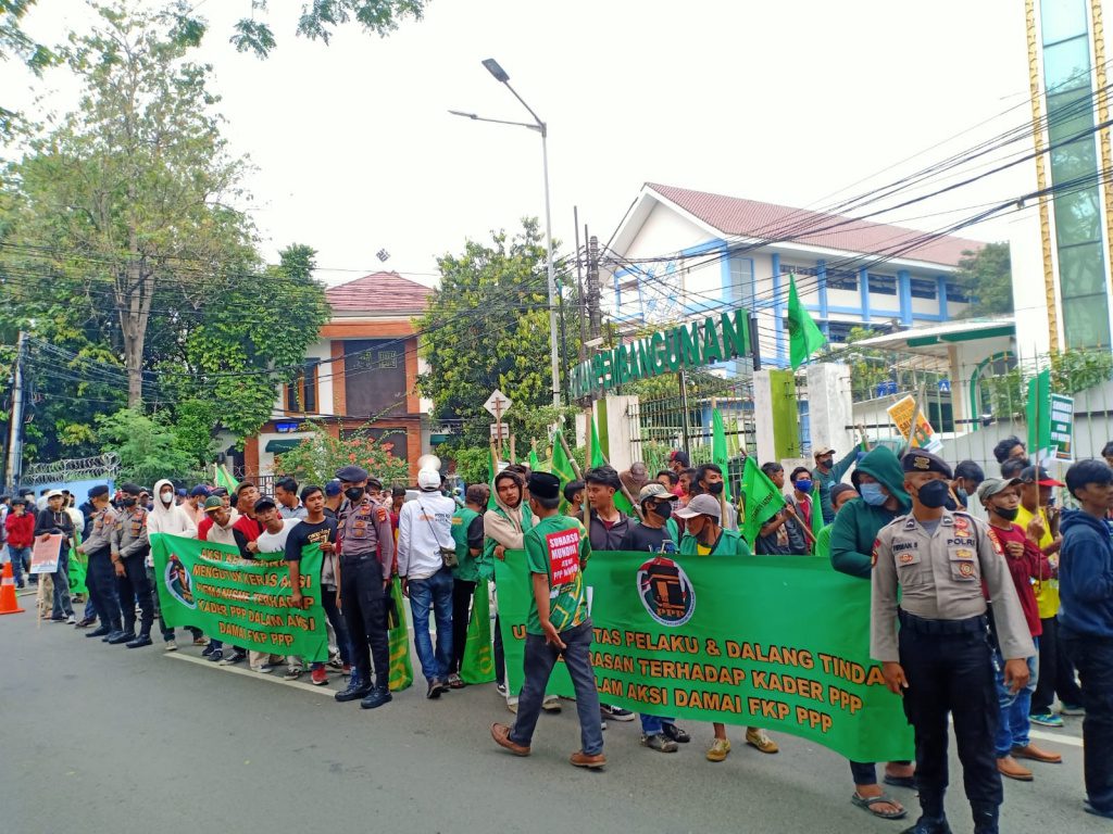 Jakarta, ebcmedia – Ratusan Pengunjuk rasa dari front kader penyelamat Partai Persatuan Pembangunan ( FKP PPP) menyambangi kantor Pusat PPP di Jalan Diponegoro No.60 Jakarta Pusat, Senen (18/7/2022).