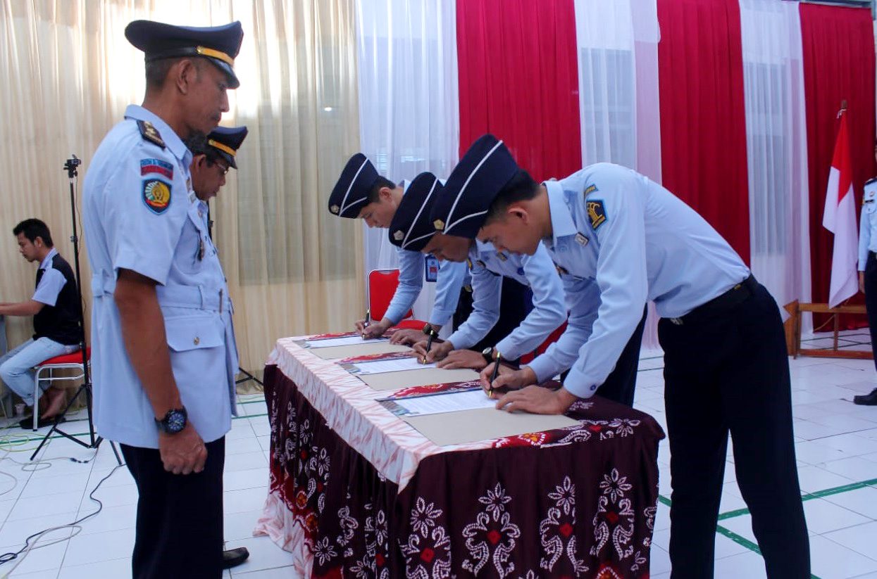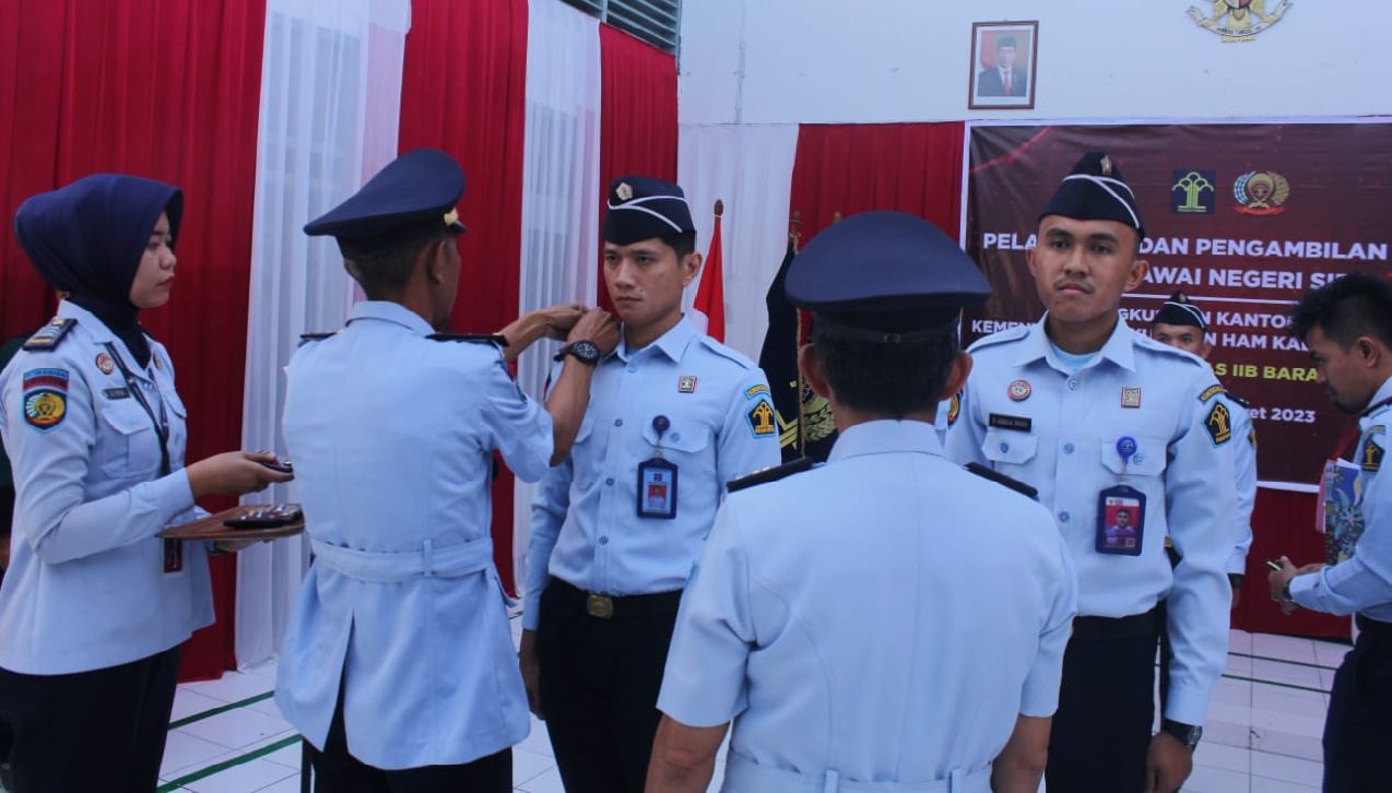 Karutan Barabai, Gusti Iskandarsyah, melakukan Kepala Kesatuan Pengamanan Rutan, Abdul, Kadir Jailani, mengucapkan selamat kepada PNS yang telah resmi dilantik dan agar terus menjaga kehormatan serta marwah Kemenkumham dengan bekerja dengan penuh dedikasi.