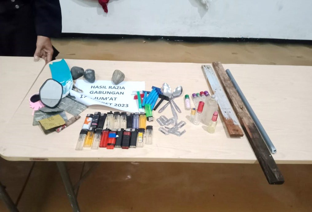 Razia gabungan turut menyertakan Personel Polres HST dan Kodim 1002/HST dengan menyasar blok A, B dan C. Dari hasil penggeledahan tidak ditemukan barang terlarang seperti narkoba dan handphone namun petugas mengamankan sejumlah barang yang dapat memicu gangguan keamanan seperti korek api, sendok besi, bilah kayu, dan batu.