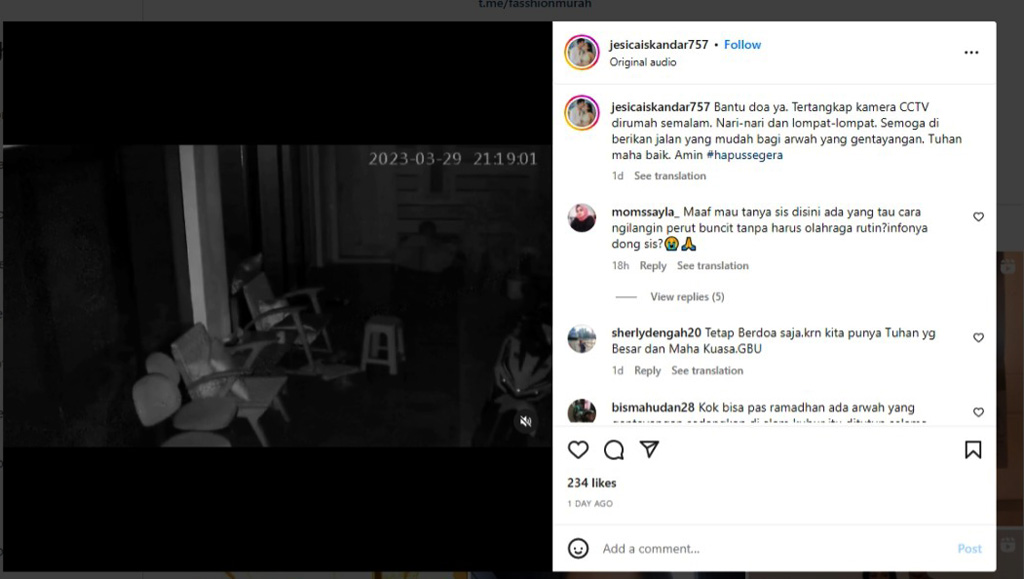 Postingan akun IG ‘inijedar‘ milik Jessica Iskandar tersebut memuat rekaman cctv tersebut pada 31 maret 2023.