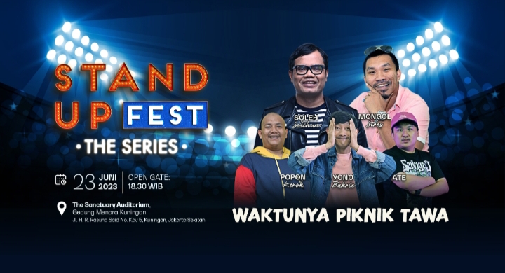 Seri perdana Stand Up Fest ini mengusung tema “Waktunya Piknik Tawa” acara ini akan mengahadirkan komika ternama yaitu Soleh Solihun, Mongol Stres, Popon Kerok, Yono bakrie, dan Ate.