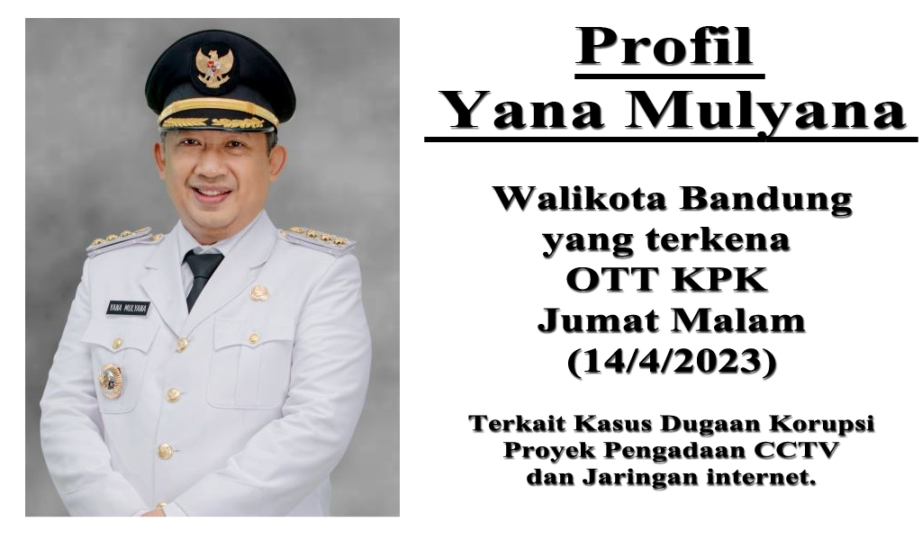 Jakarta, ebcmedia- Walikota Bandung Yana Mulyana tertangkap tangan bersama delapan orang lainya oleh KPK terkait kasus dugaan korupsi proyek CCTV dan Jaringan Internet , pada Jumat Malam (14/4/2023).