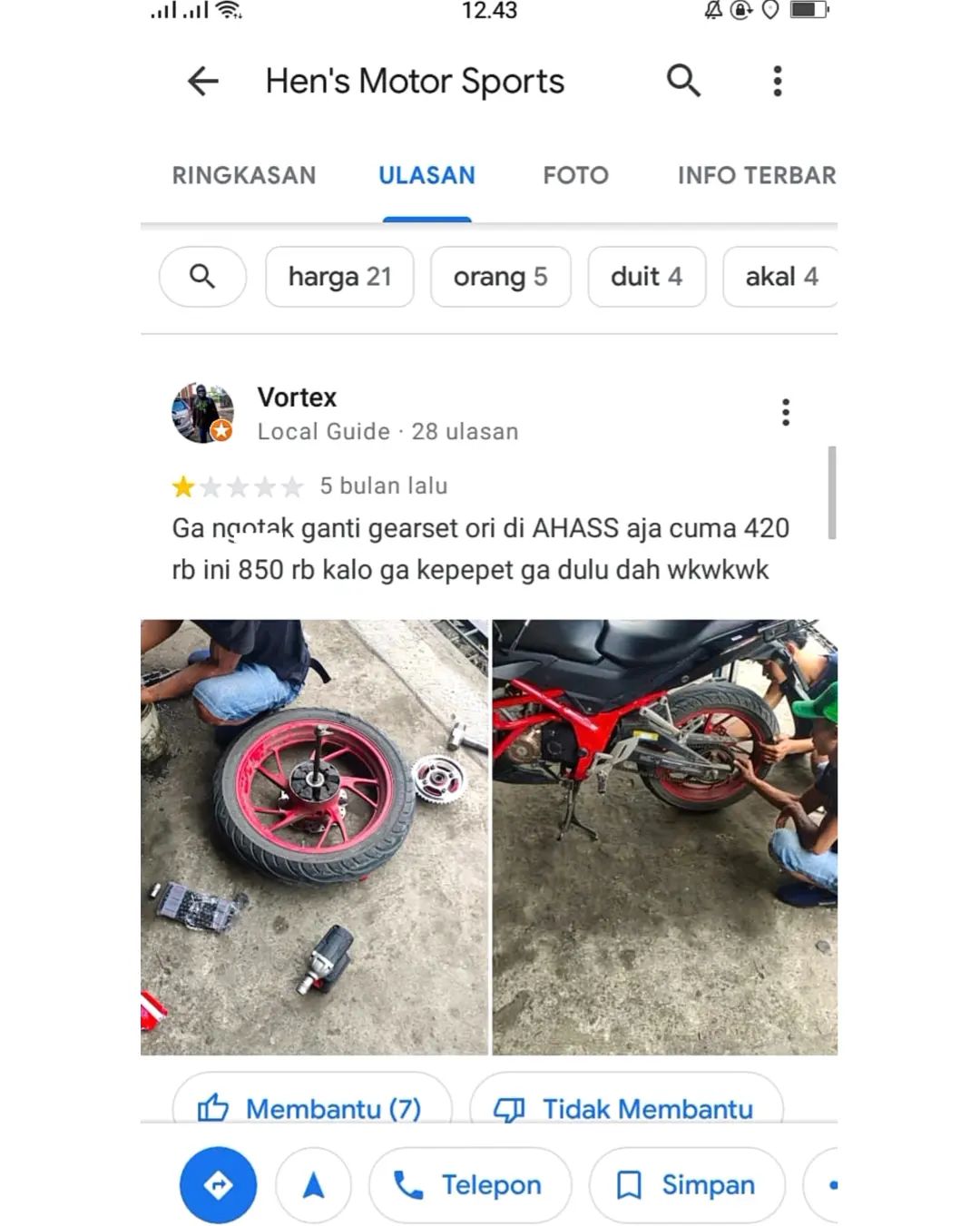 Karena penasaran, akhirnya sang pemilik motor mencari dan melihat ulasan di google. Dan ternyata korbannya cukup banyak. (Rz)