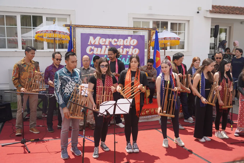 Grup mahasiswa Fakultas Sastra Universitas Lisabon memainkan alat musik angklung mengiringi lagu Portugis, “Pica do Sete”, dan kemudian menampilkan tarian nusantara dengan medley lagu dari berbagai daerah di Indonesia.