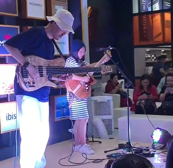 Keduanya bermain bersama, jemari endah lincah menari diatas gitar, sementara sang suami mencabik bass mengiri sang istri memainkan gitar.
