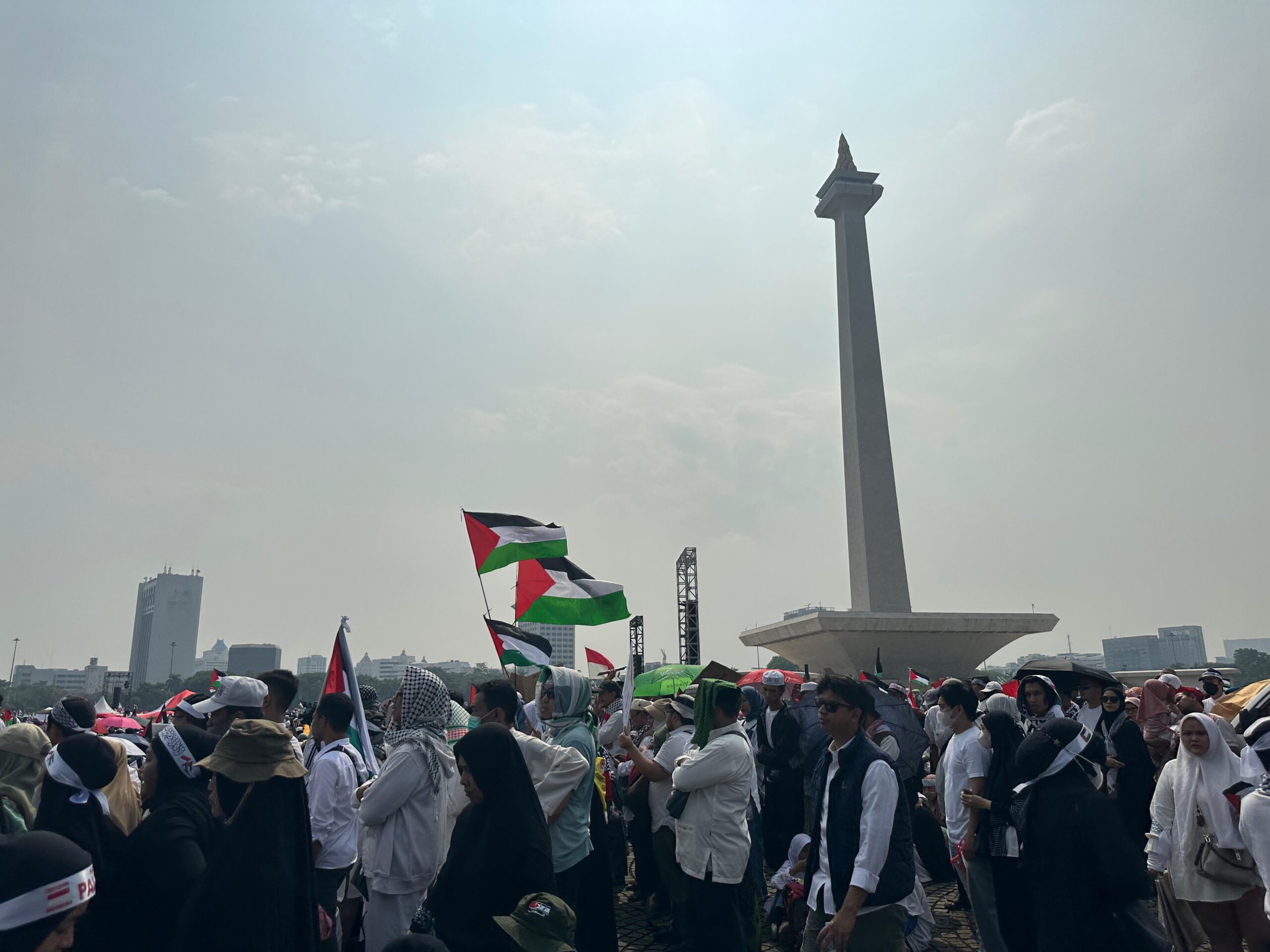 “Biar dunia menyaksikan dari Lapangan Medan Merdeka dikirimkan pesan kemerdekaan untuk Palestina. Allahu Akbar,” ujarnya.