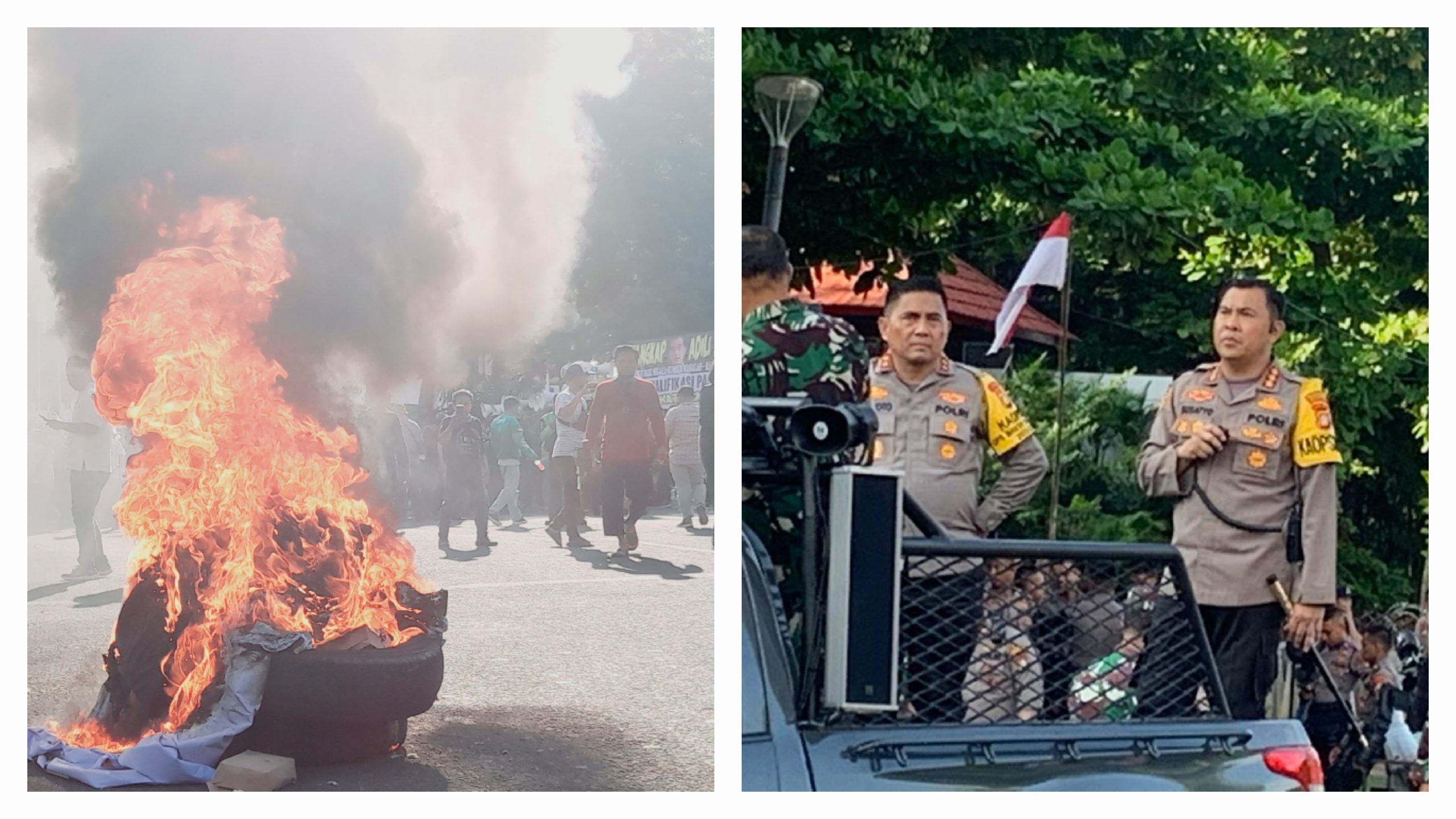 Terlihat dari pantauan ebcmedia Kapolda Metro Jaya Irjen Pol Karyoto langsung memantau kondisi aksi bakar ban yang dilakukan oleh massa kubu 01 dan 03.Namun aparat keamanan belum bertindak represif terhadap aksi massa tersebut.