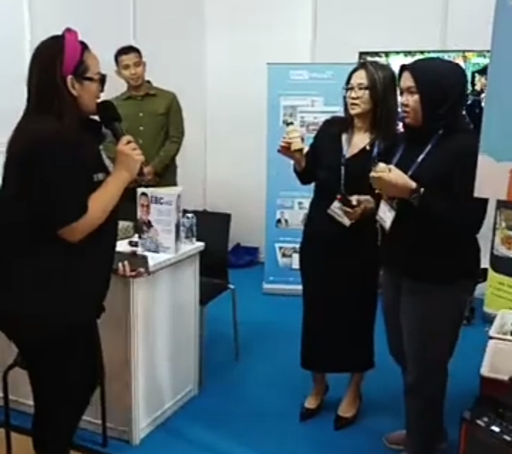 Suasana pun semakin seru dengan hadirnya wanita cantik Oca Jameela sebagai Master of Ceremony (MC). Oca Jameela yang tampak energik ini langsung menyapa pengunjung yang datang ke stand EBC Group di pameran GPPE.