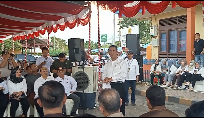 Menteri Pertanian Andi Amran Sulaiman saat menyampaikan sambutan di acara Launching Perdana Ekspor Jagung Gorontalo 50.000 Ton, Rabu (29/5/2024). Foto.ebcmedia.