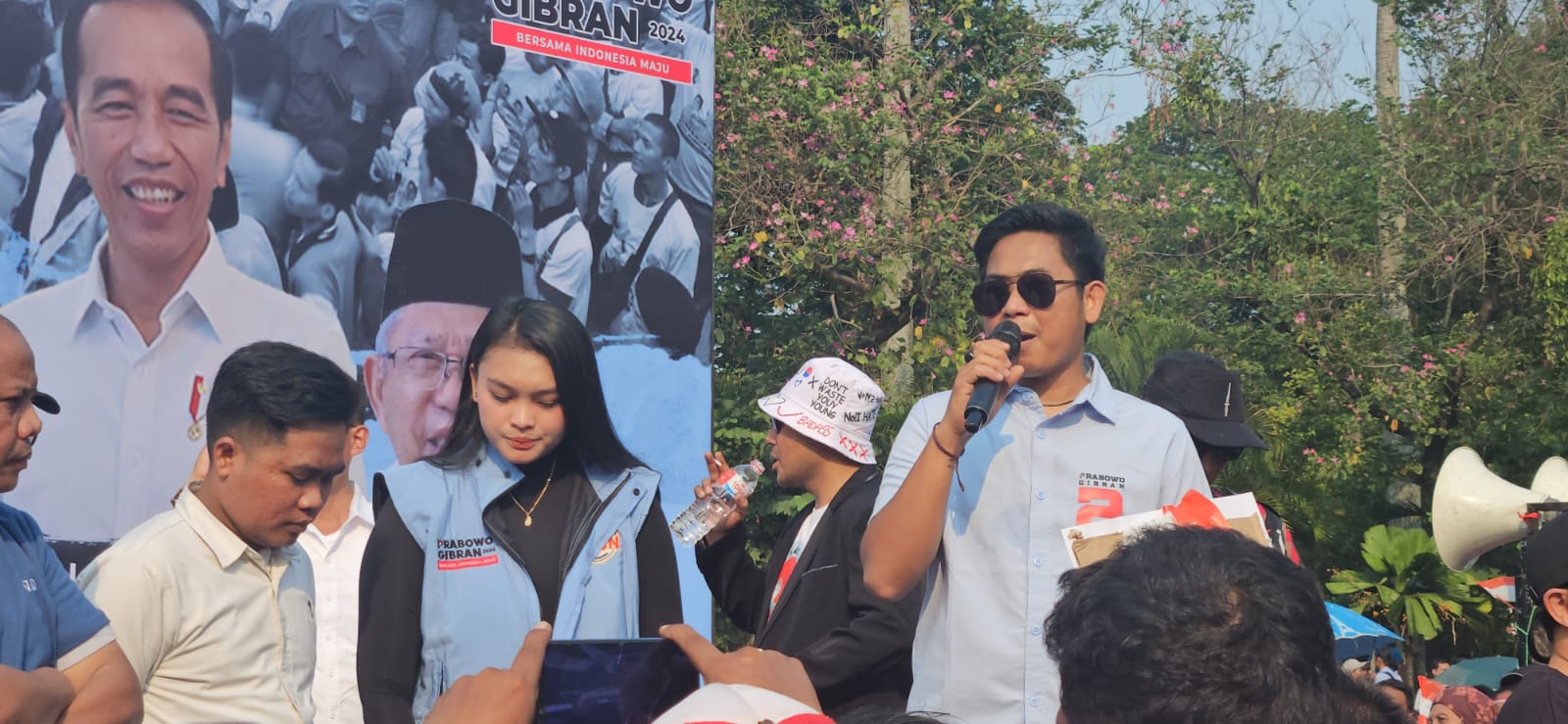 Ratusan massa yang hadir dihibur dengan adanya panggung kecil untuk melakukan berbagai orasi dukungan terhadap masa pemerintahan Joko Widodo dan Ma’aruf Amin. Tak hanya itu mereka yang tergabung dalam berbagai ormas juga mendeklarasikan dukungannya kepada Presiden terpilih Prabowo – Gibran periode 2024-2029.