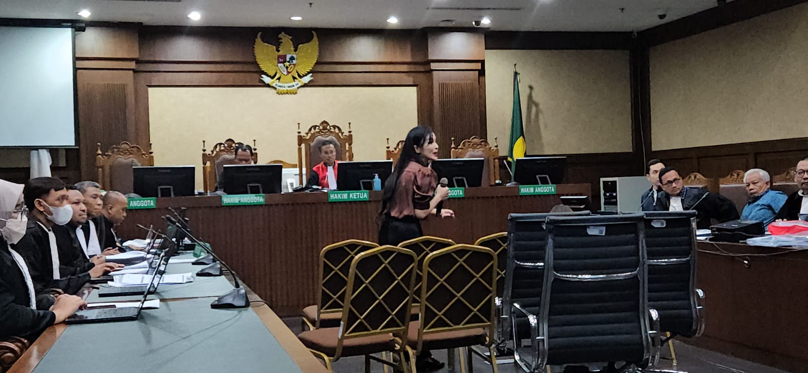 “Saya di sidang kemarin sudah menjelaskan, suami saya ini pernah memberikan hadiah, rutinitas dia memberikan iPhone setiap tahun,tapi untuk tas, saya yang melarang Yang Mulia. Karena dari tahun 2014 saya ini sudah bekerja sama dengan toko-toko online shop ini dan toko-toko offline shop ini yang toko-toko tas Yang Mulia.” jawab Sandra.