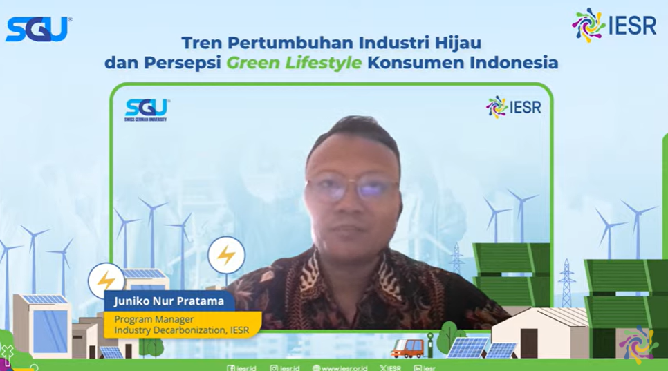Juniko Nur Pratama, Manajer Program Dekarbonisasi Industri, IESR menyebut tren transisi energi global dan komitmen Indonesia untuk pencapaian NZE 2060 atau lebih awal turut membawa perubahan terhadap peningkatan kesadaran masyarakat dalam produk dan gaya hidup ramah lingkungan (green lifestyle) dan rendah emisi. Oleh karena itu, ia menekankan pentingnya industri melakukan upaya penurunan emisi atau dekarbonisasi untuk memenuhi kebutuhan konsumen yang semakin peduli terhadap keberlanjutan lingkungan.