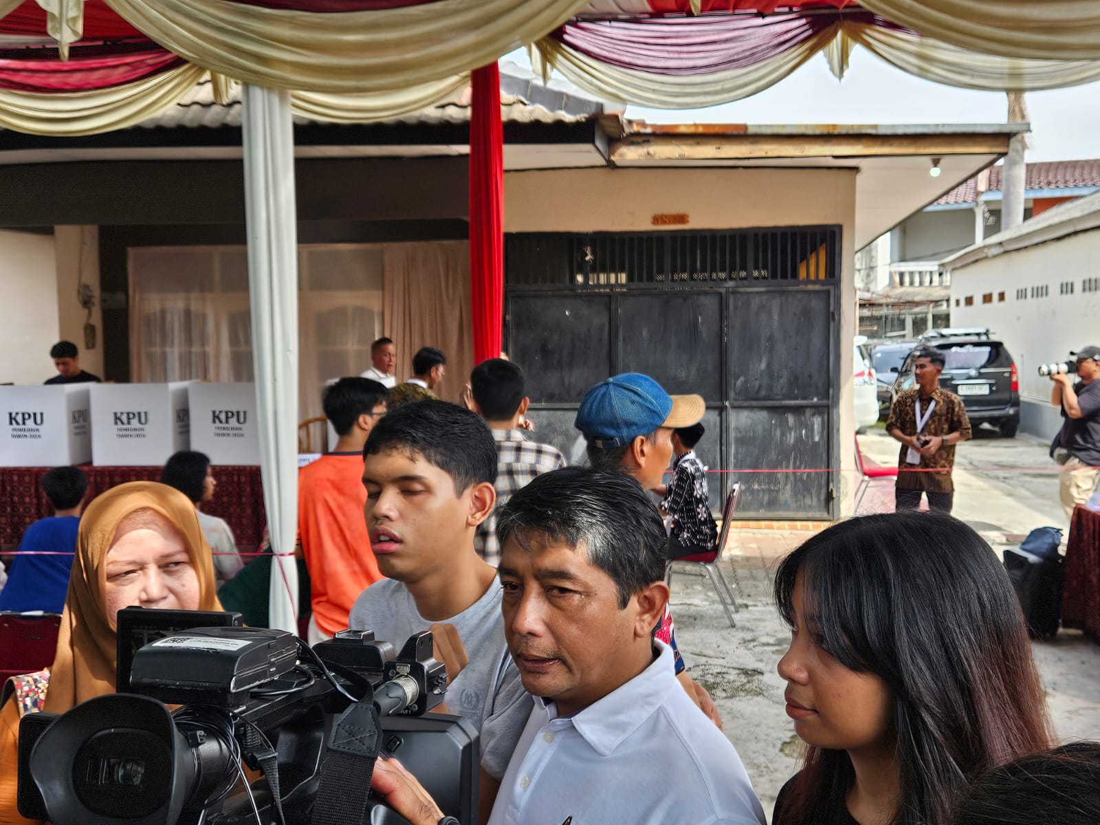 Pantauan Jurnalis Ebc media, Ikhwan terlihat mendampingi sang anak untuk mencoblos, namun, dia mengaku, hanya menuntun dan membantu menuntun anaknya menuju bilik suara.