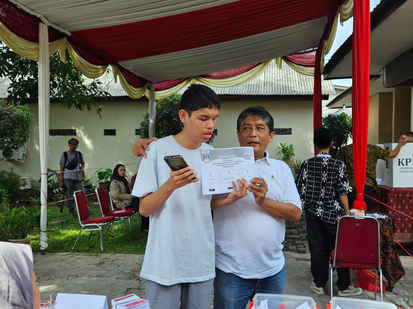 Sementara orang tua Maulana, Muhammad Ikhwan mengatakan anaknya sangat terbantu saat memilih dengan alat peraga yang disediakan panitia pemungutan di bilik suara. Dengan adanya alat peraga, sambungnya, mencoblos jadi lebih mudah dan membuat pemilih disabilitas nyaman.
