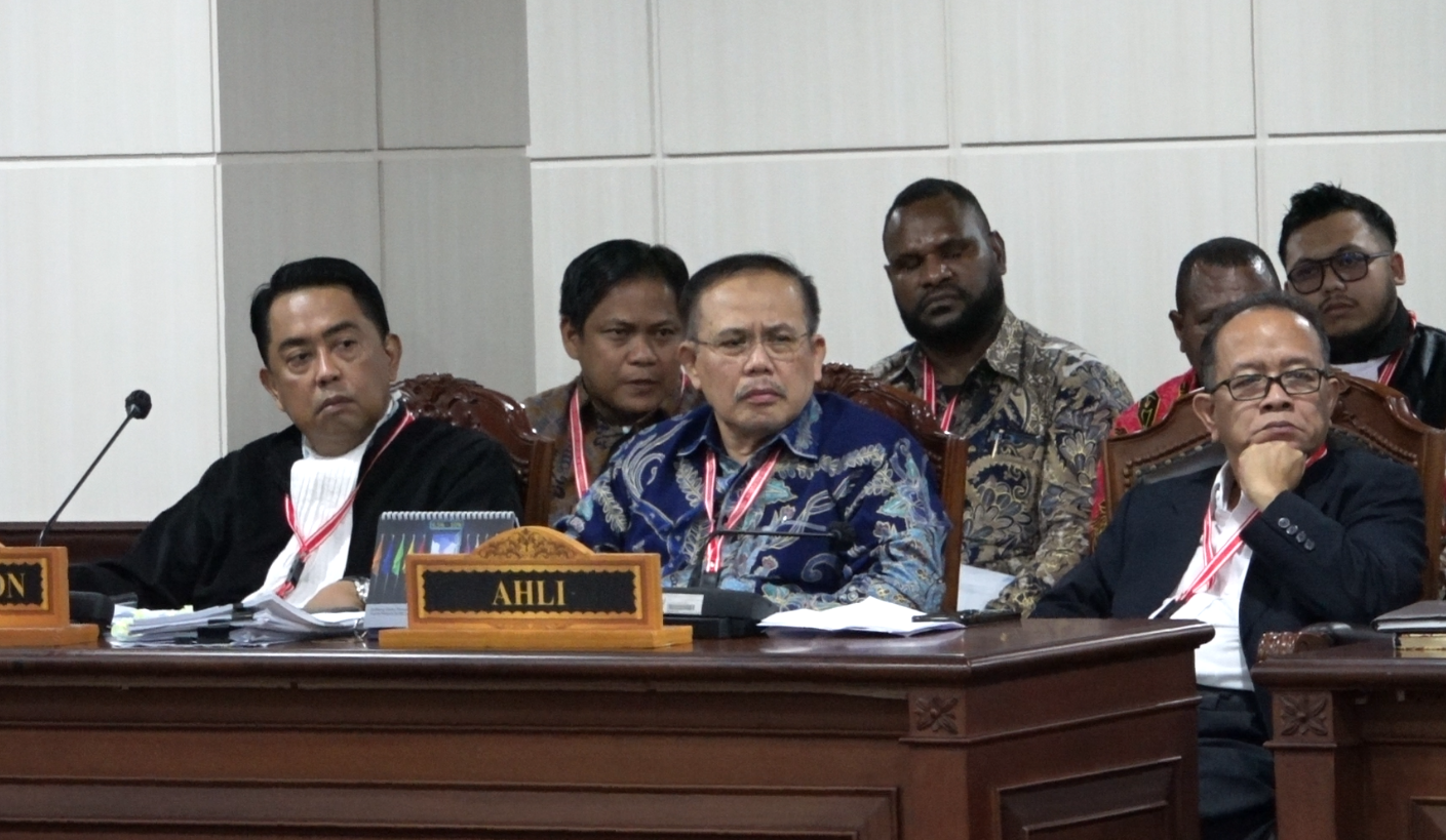 Dalam sidang lanjutan tersebut Pihak Termohon yang diwakili oleh kuasa hukumnya yaitu Ali Nurdin, SH, M.H. menerangkan bahwa dari KPU mengajukan 2 orang saksi ahli yaitu Prof. Dr. Aswanto, S.H., M.Si.,DFM dan Dr. Nur Hidayat Sardini, S.Sos., S,H., M.Si. “Dari kami selaku kuasa hukum dari KPU Papua Pegunungan dan dari Pihak terkait mengajukan 2 ahli juga yaitu ahli hukum adat Arias dan Prof. Maruarar Siahaan sedangkan untuk Pemohon tidak mengajukan ahli satupun.” ungkapnya