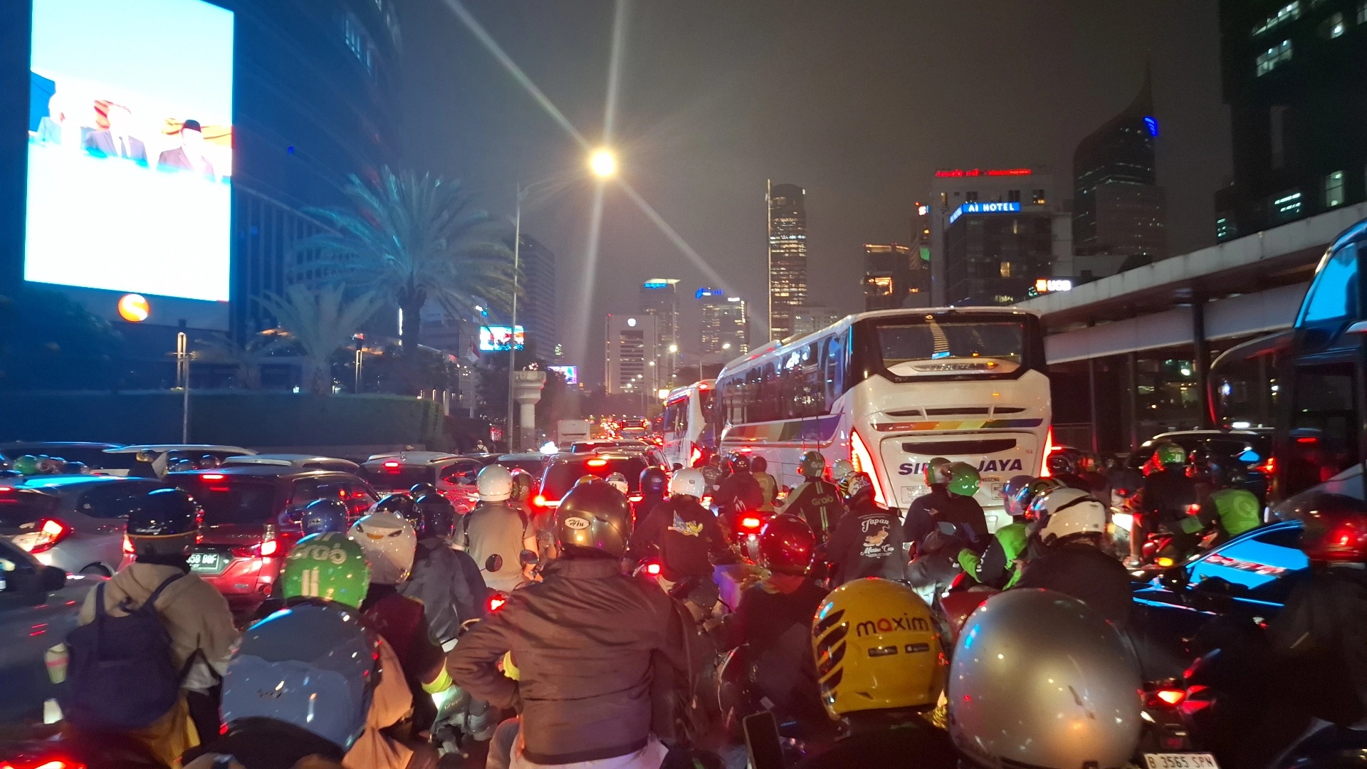 Pada pukul 16.17 WIB, petugas kepolisian sempat menutup akses Jalan Gatot Subroto yang mengarah ke Jalan Jenderal Sudirman melalui kolong simpang Susun Semanggi. Kendaraan roda empat diarahkan untuk lurus ke arah Slipi, sementara sepeda motor masih diizinkan melintas.