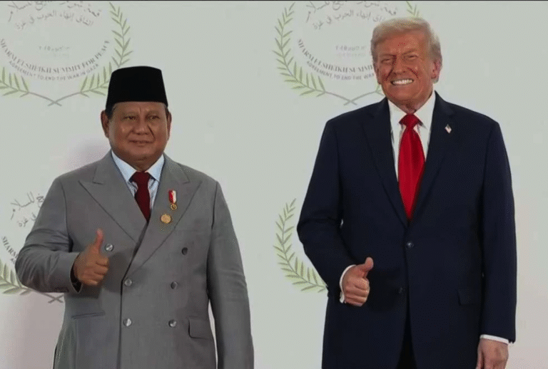 Jakarta, ebcmedia.id – Presiden Amerika Serikat (AS) Donald Trump memberikan pujian kepada Presiden Indonesia, Prabowo Subianto, atas kehadirannya dalam Konferensi Tingkat Tinggi (KTT) Perdamaian Gaza yang berlangsung di Sharm El-Sheikh, Mesir. Dalam pernyataannya, Trump menilai Indonesia sebagai negara besar dan kuat dengan perkembangan luar biasa.